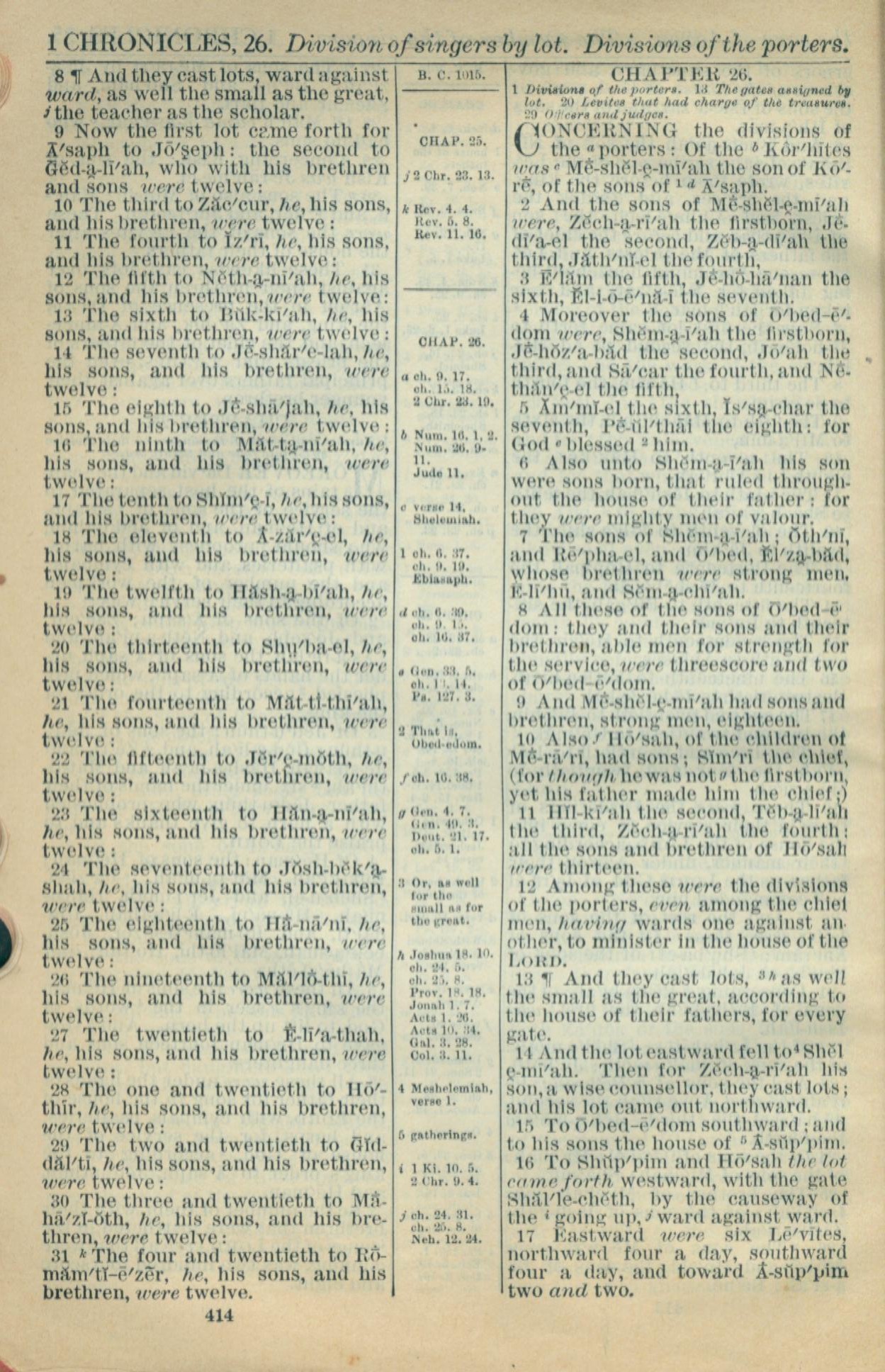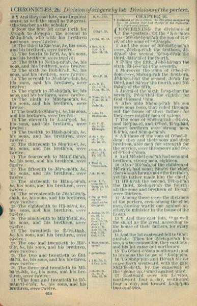 1916年Holy Bible 歷代志上 25 章 8 節到 26 章 17 節
