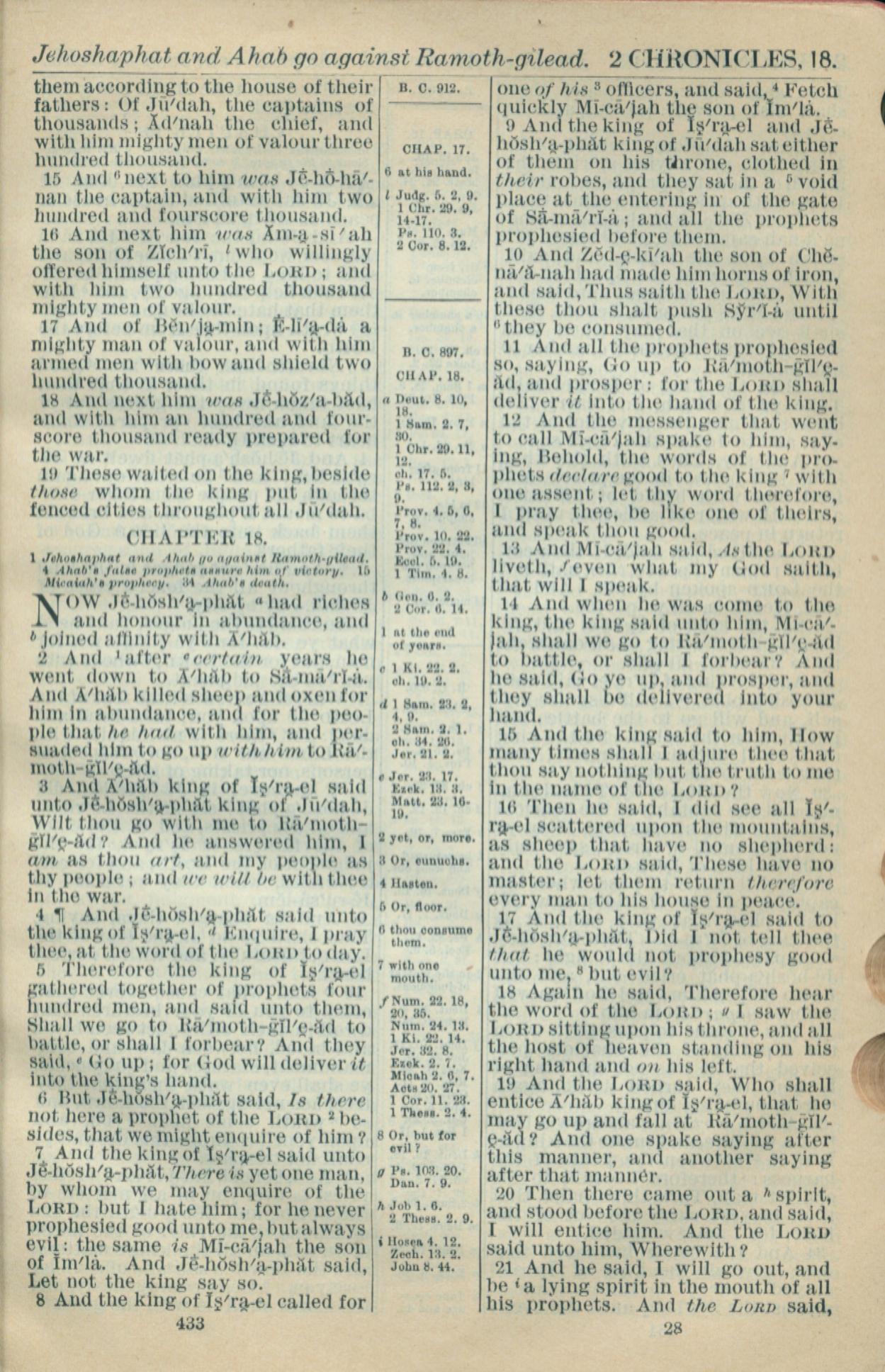 1916年Holy Bible 歷代志下 17 章 15 節到 18 章 21 節