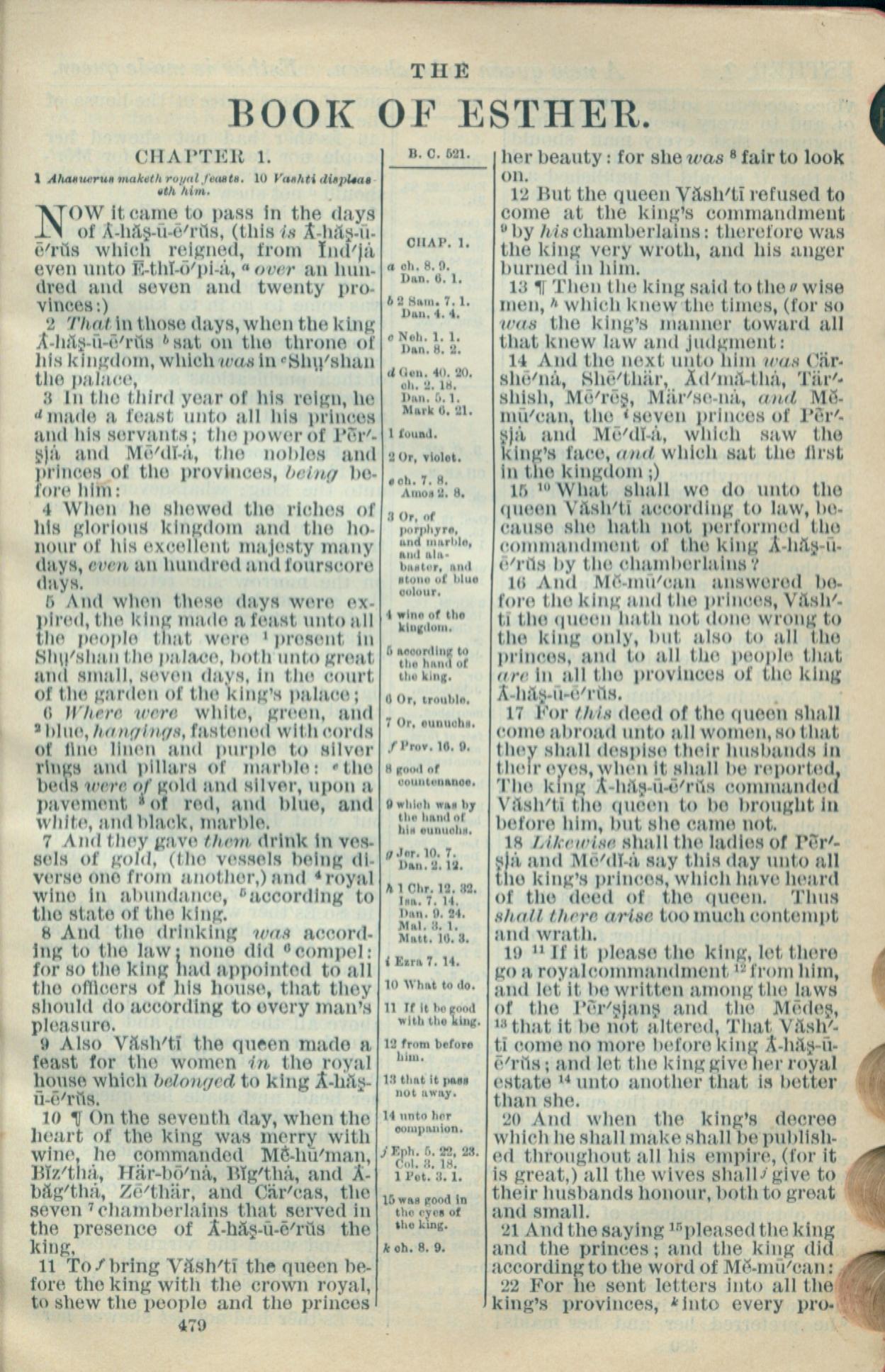 1916年Holy Bible 以斯帖記 1 章 1 節到 1 章 21 節
