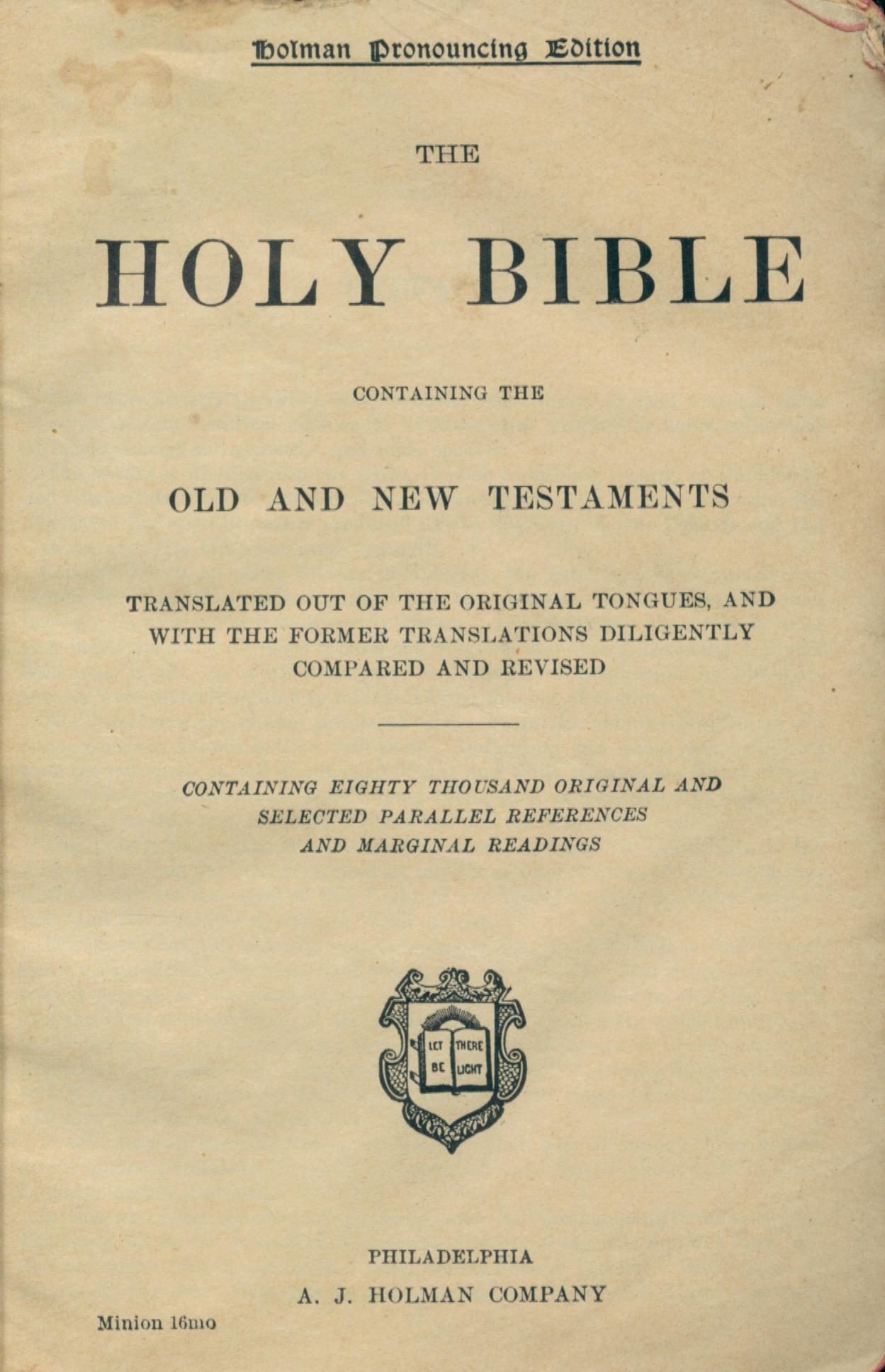 1916年Holy Bible 封面 0 章 4 節到 0 章 4 節