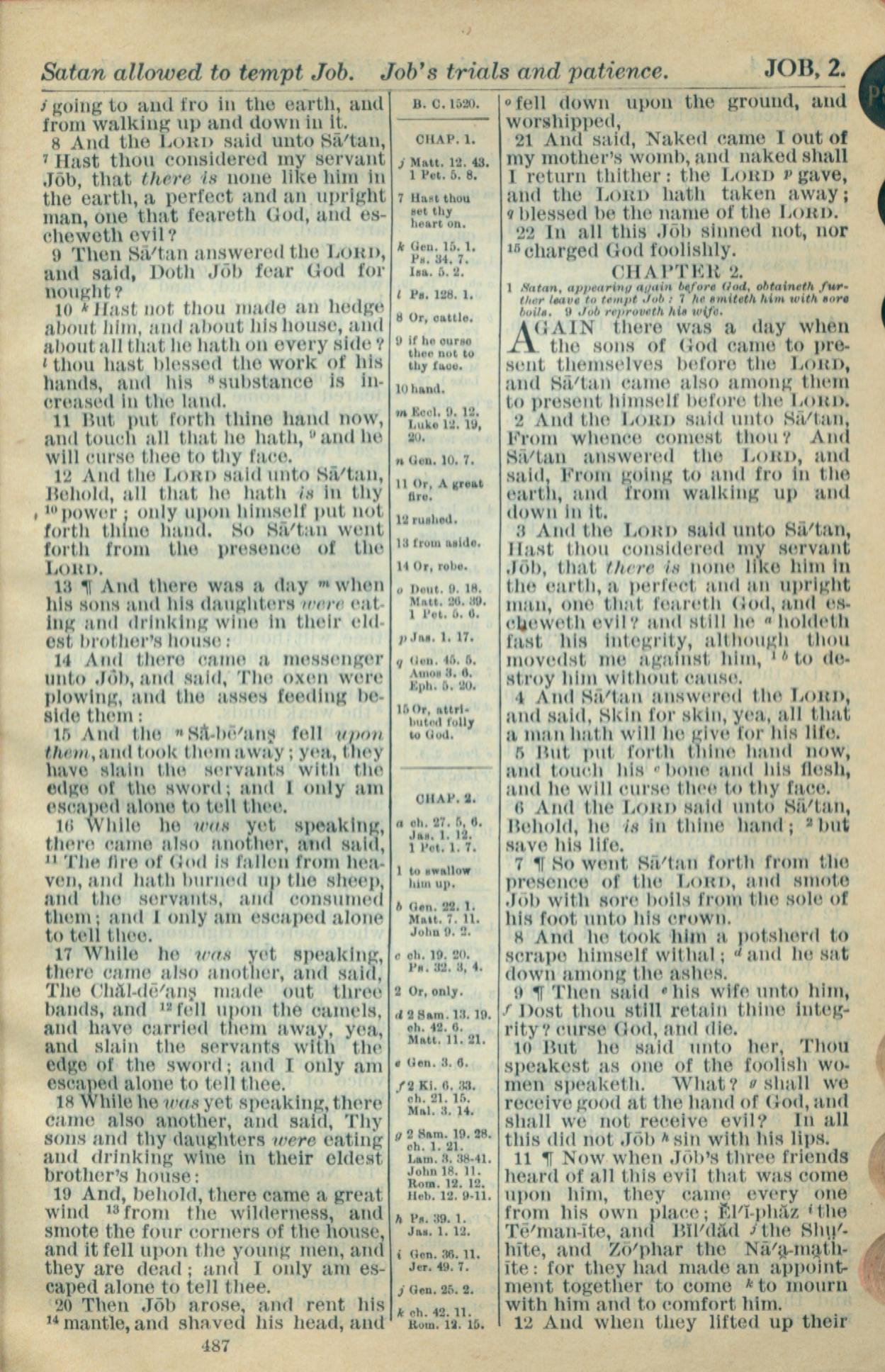 1916年Holy Bible 約伯記 1 章 8 節到 2 章 12 節