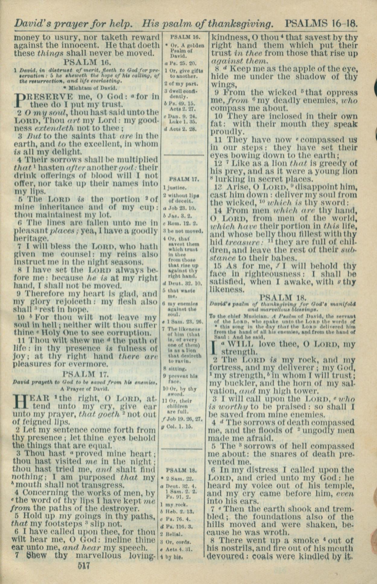 1916年Holy Bible 詩篇 16 章 1 節到 18 章 8 節