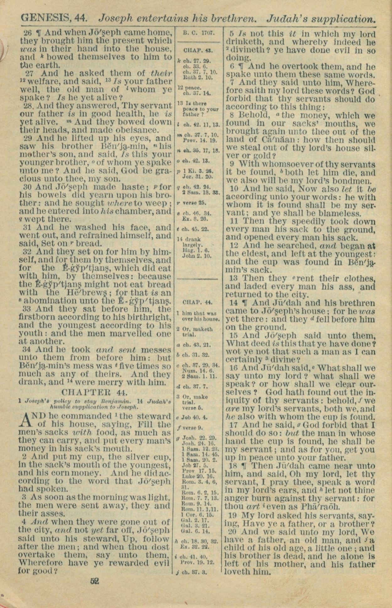 1916年Holy Bible 創世記 43 章 26 節到 44 章 20 節