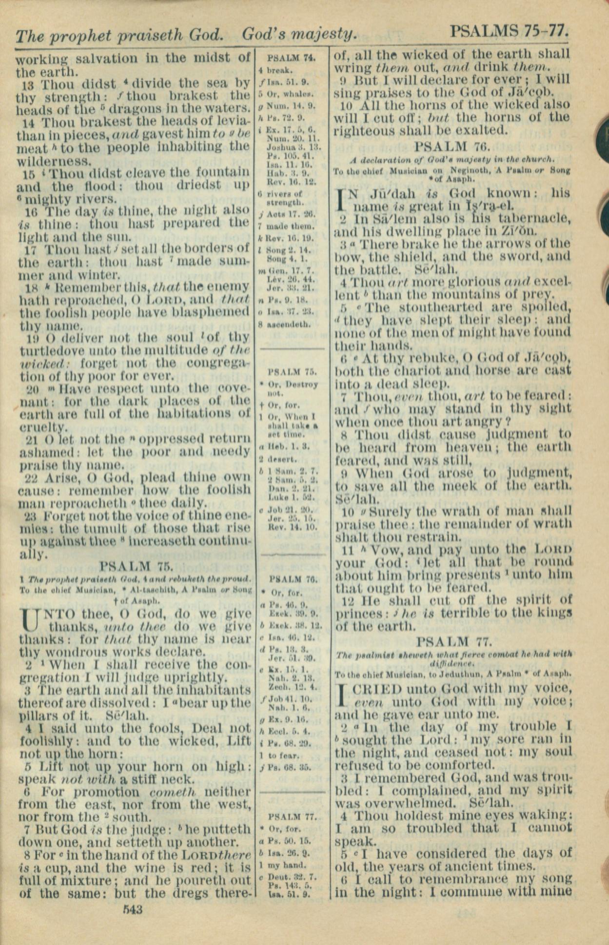 1916年Holy Bible 詩篇 74 章 13 節到 77 章 6 節