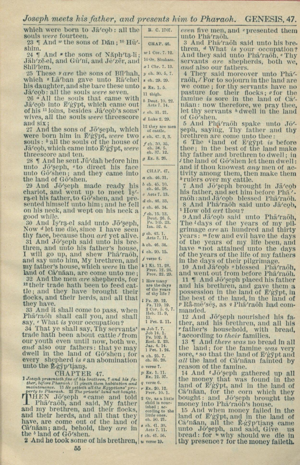 1916年Holy Bible 創世記 46 章 23 節到 47 章 15 節