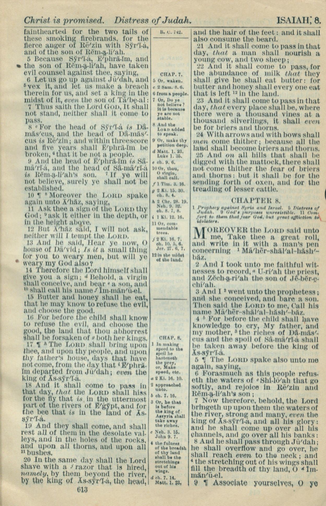 1916年Holy Bible 以賽亞書 7 章 5 節到 8 章 9 節