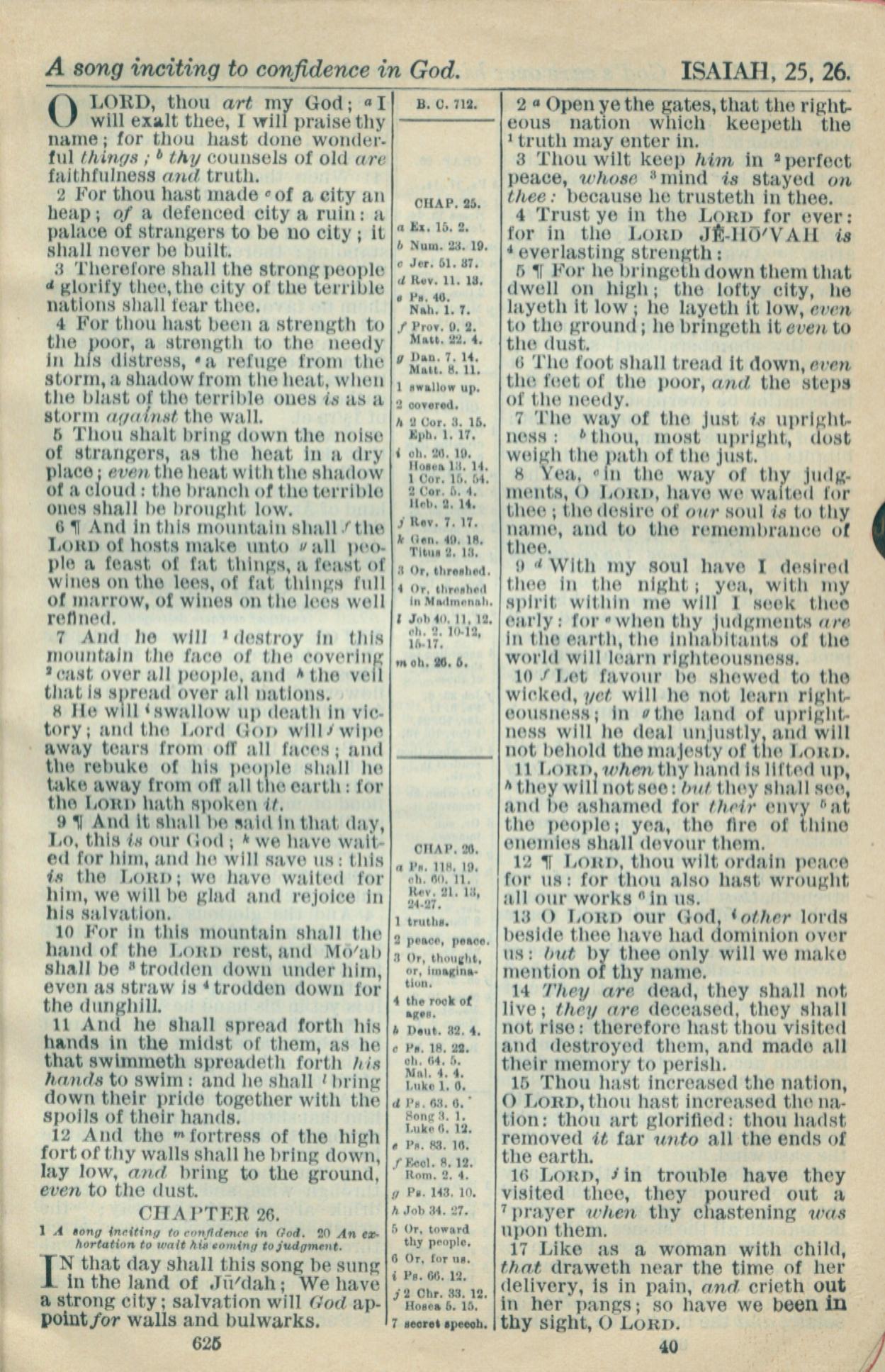 1916年Holy Bible 以賽亞書 25 章 1 節到 26 章 17 節