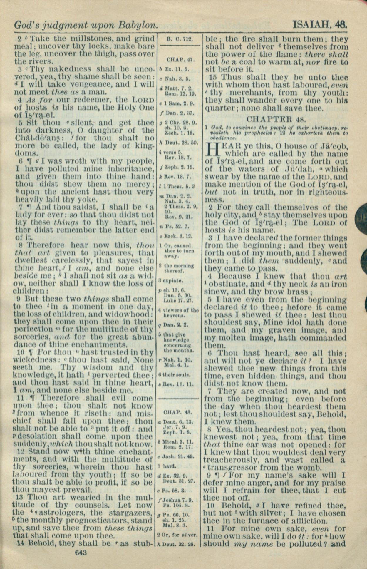 1916年Holy Bible 以賽亞書 47 章 2 節到 48 章 11 節