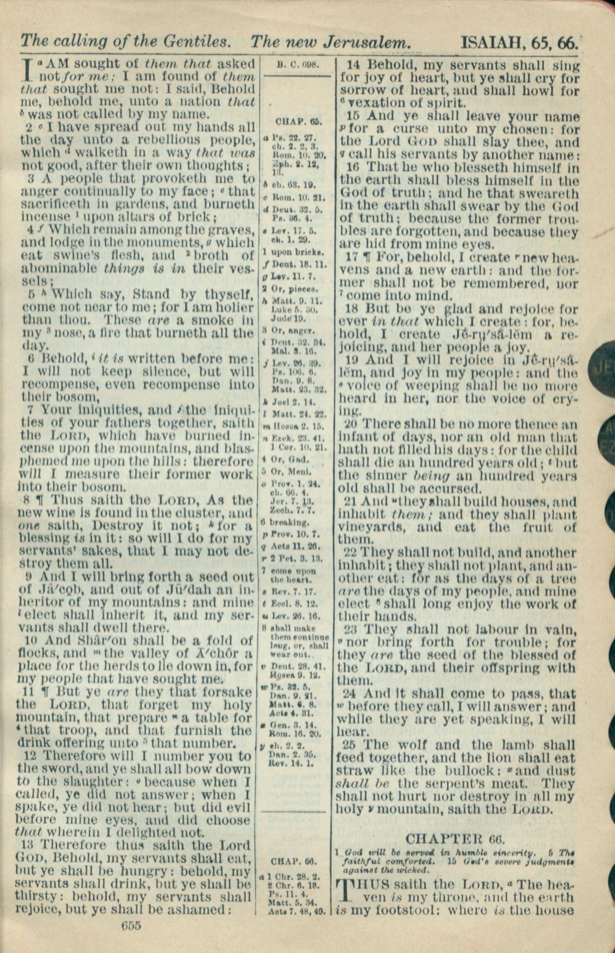 1916年Holy Bible 以賽亞書 65 章 1 節到 66 章 1 節