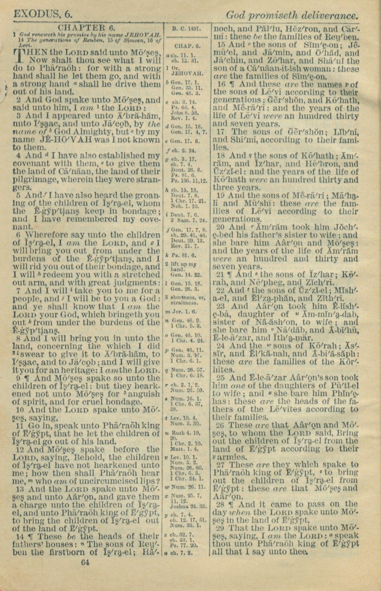 1916年Holy Bible 出埃及記 6 章 1 節到 6 章 29 節
