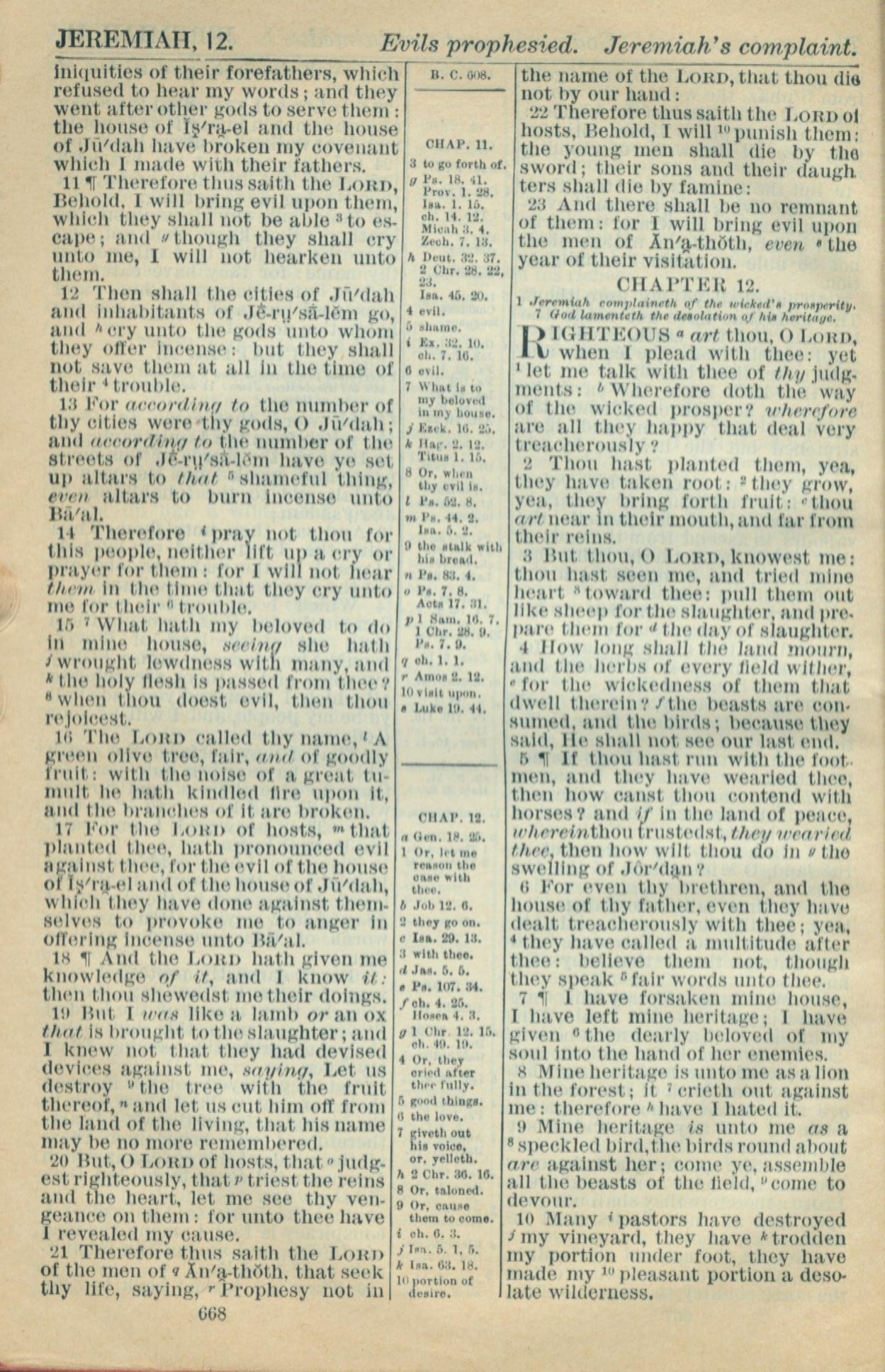 1916年Holy Bible 耶利米書 11 章 11 節到 12 章 10 節