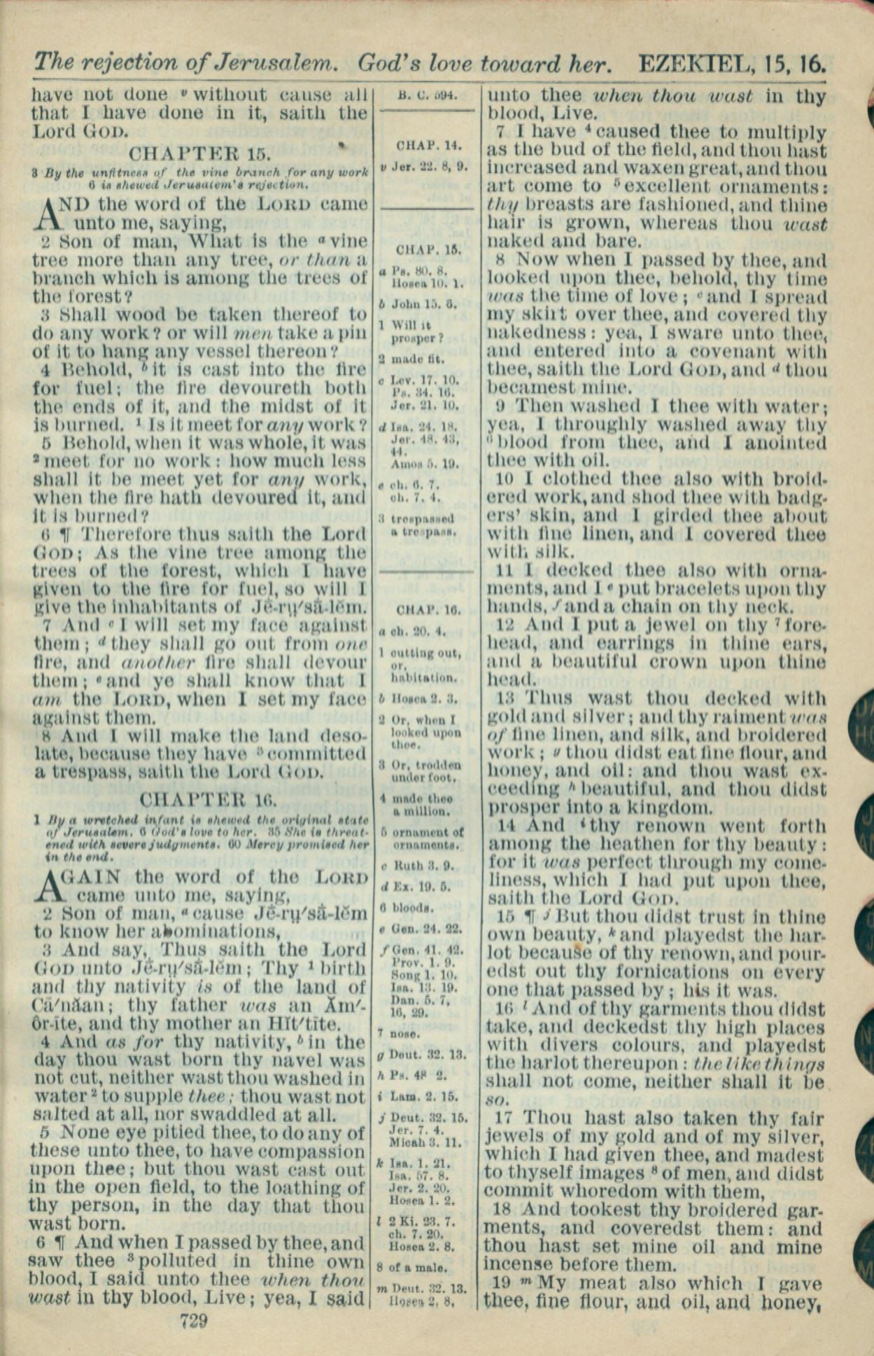 1916年Holy Bible 以西結書 15 章 1 節到 16 章 19 節