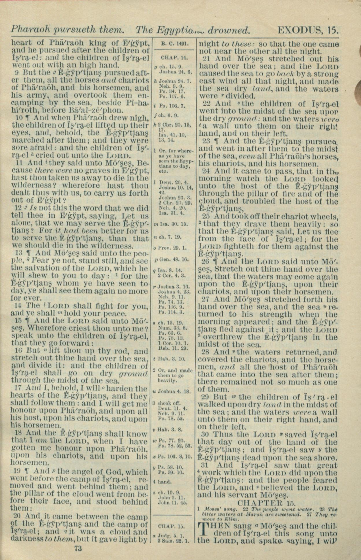 1916年Holy Bible 出埃及記 14 章 9 節到 15 章 1 節