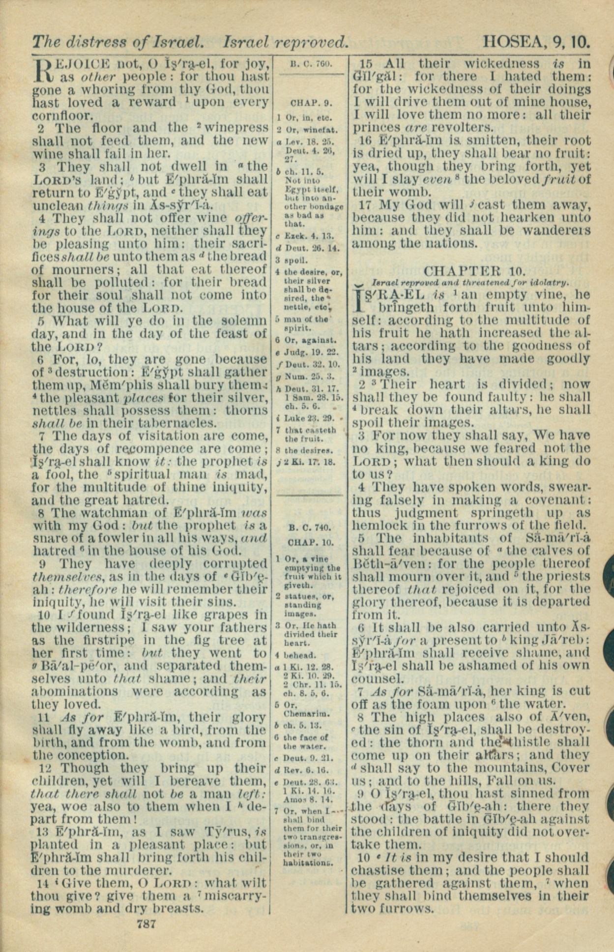 1916年Holy Bible 何西阿書 9 章 1 節到 10 章 10 節