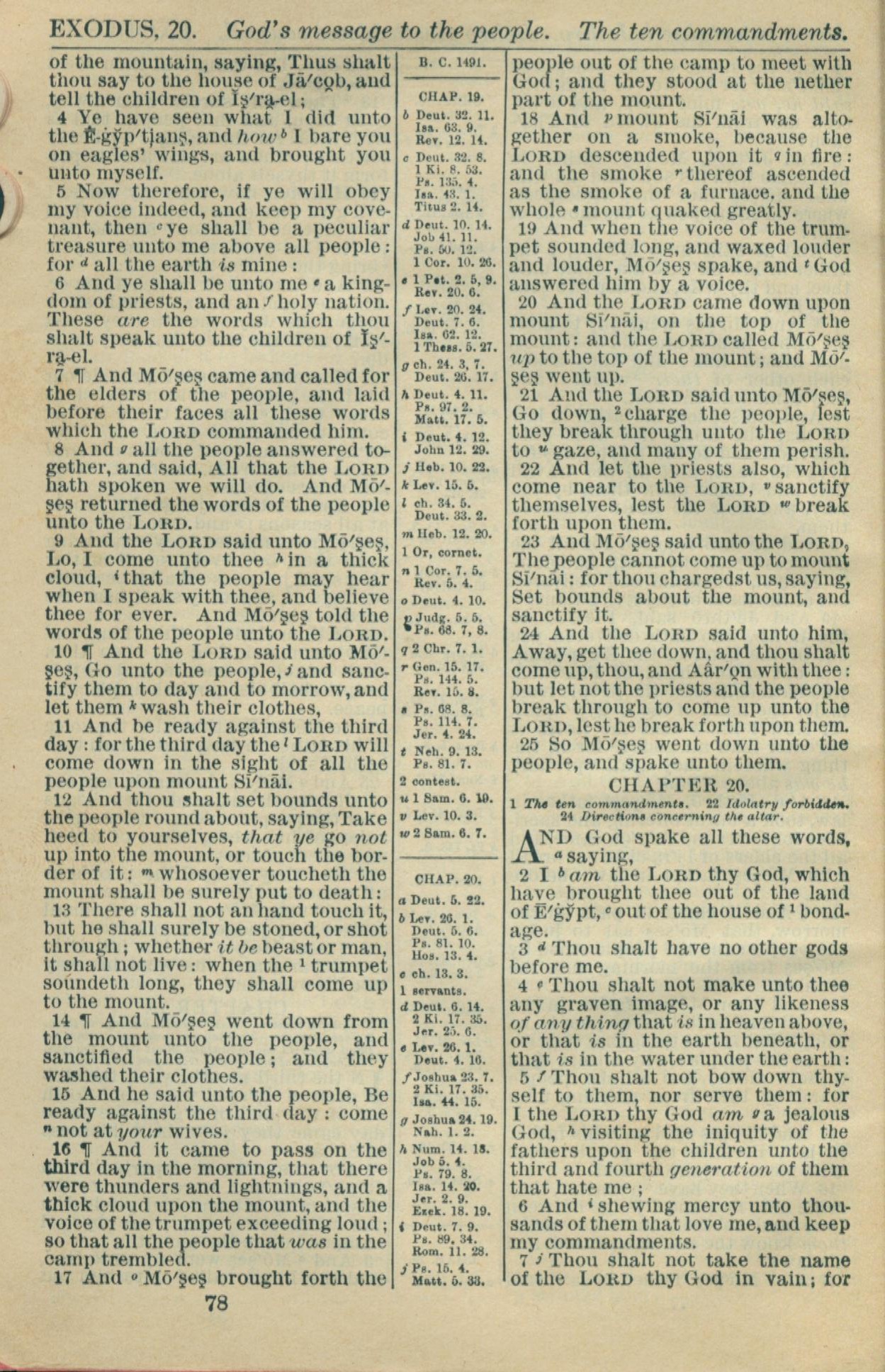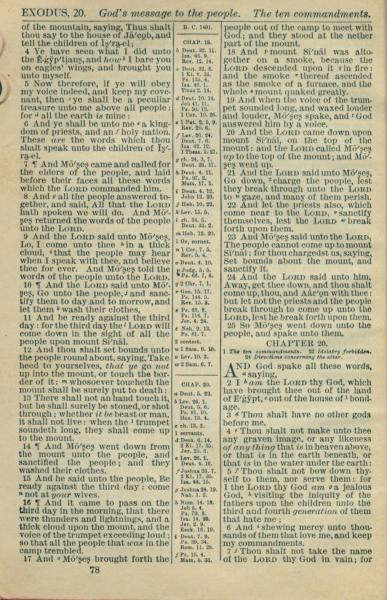 1916年Holy Bible 出埃及記 19 章 4 節到 20 章 7 節