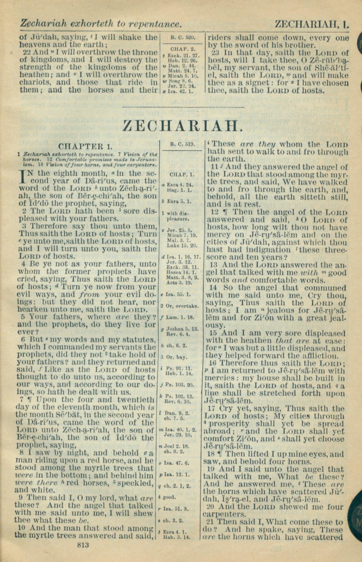 1916年Holy Bible 撒迦利亞書 1 章 1 節到 1 章 21 節