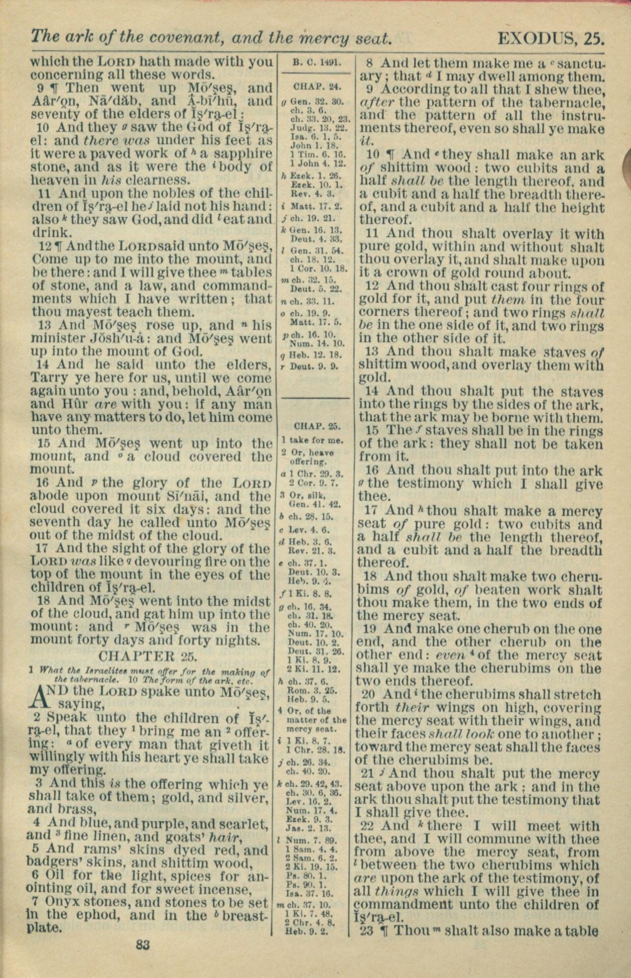 1916年Holy Bible 出埃及記 24 章 9 節到 25 章 23 節