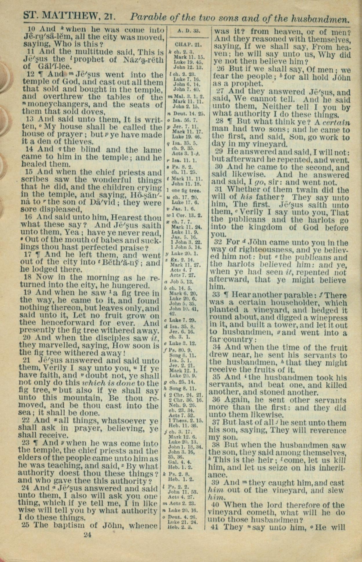 1916年Holy Bible 馬太福音 21 章 10 節到 21 章 41 節