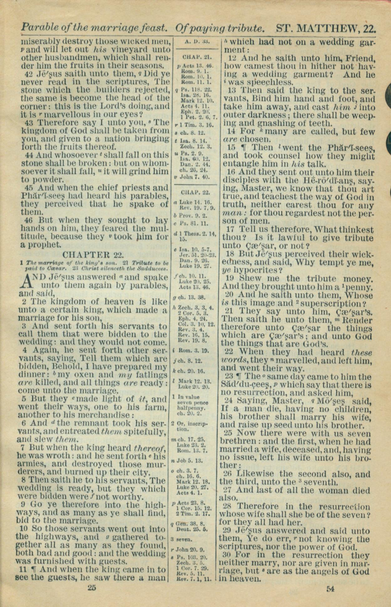 1916年Holy Bible 馬太福音 21 章 42 節到 22 章 30 節