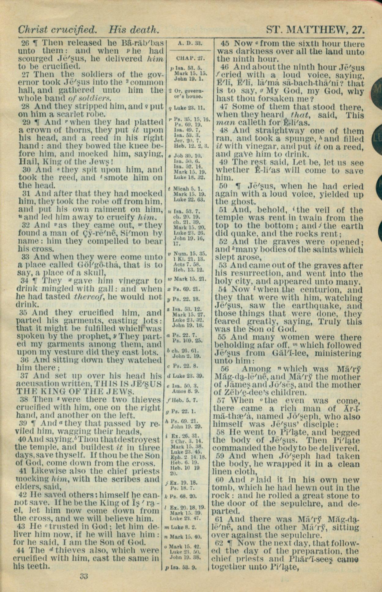 1916年Holy Bible 馬太福音 27 章 26 節到 27 章 62 節