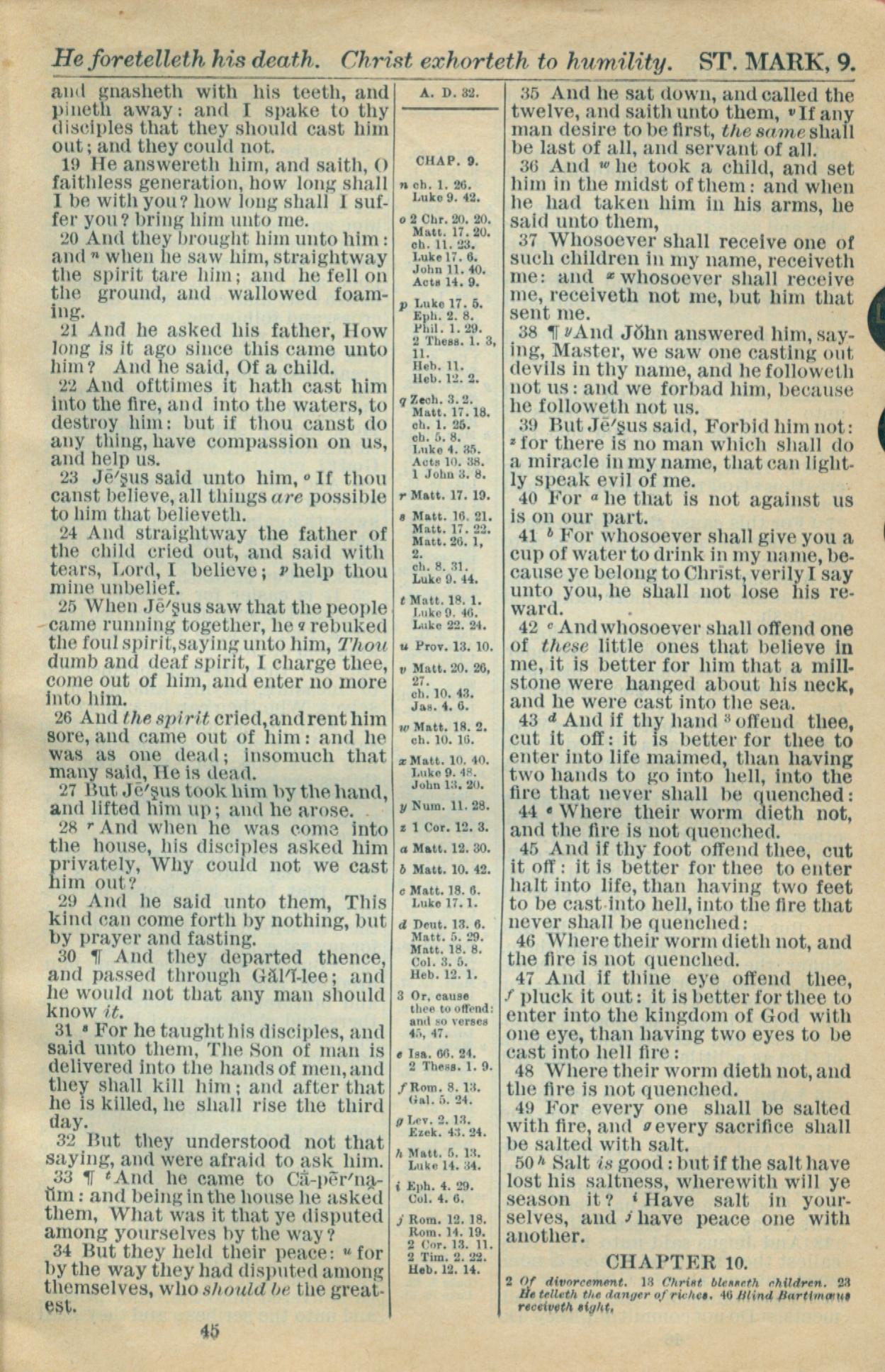 1916年Holy Bible 馬可福音 9 章 19 節到 9 章 50 節