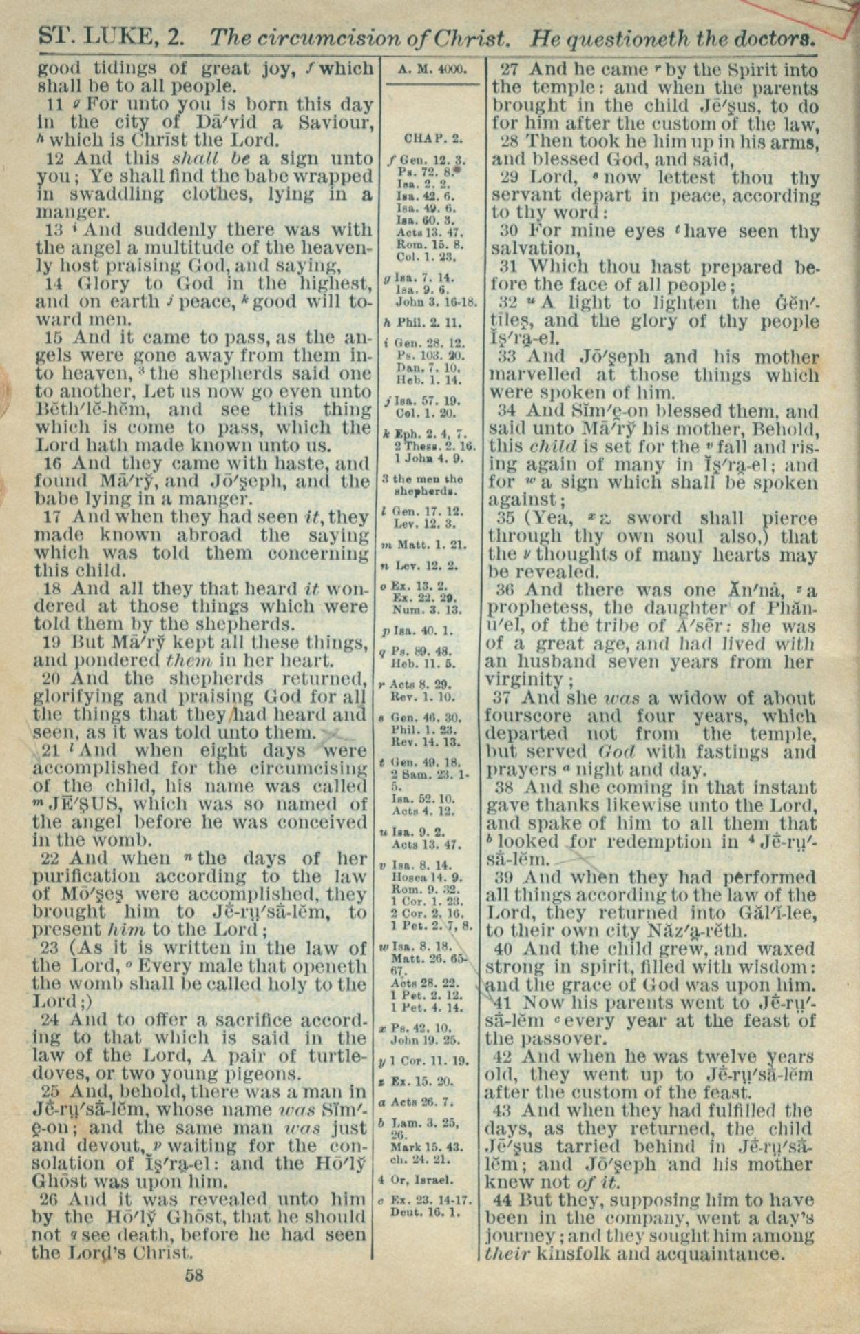 1916年Holy Bible 路加福音 2 章 11 節到 2 章 44 節