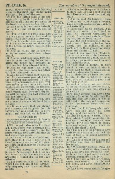 1916年Holy Bible 路加福音 15 章 22 節到 16 章 20 節