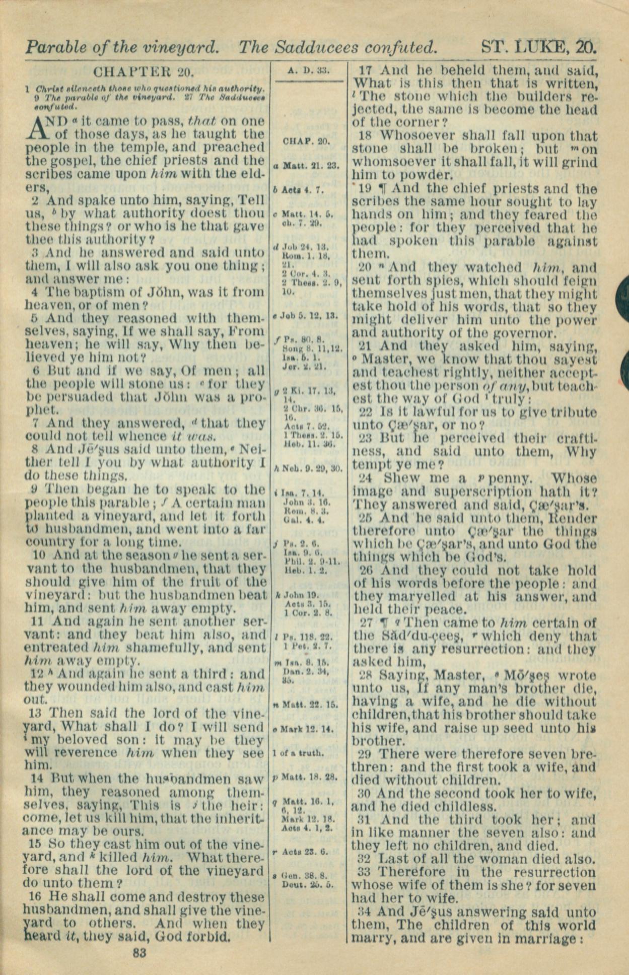 1916年Holy Bible 路加福音 20 章 1 節到 20 章 34 節