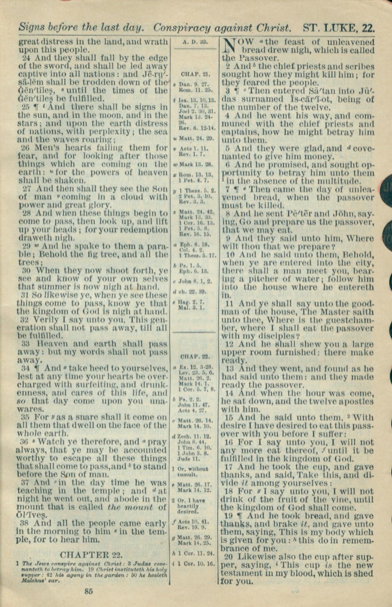 1916年Holy Bible 路加福音 21 章 24 節到 22 章 20 節