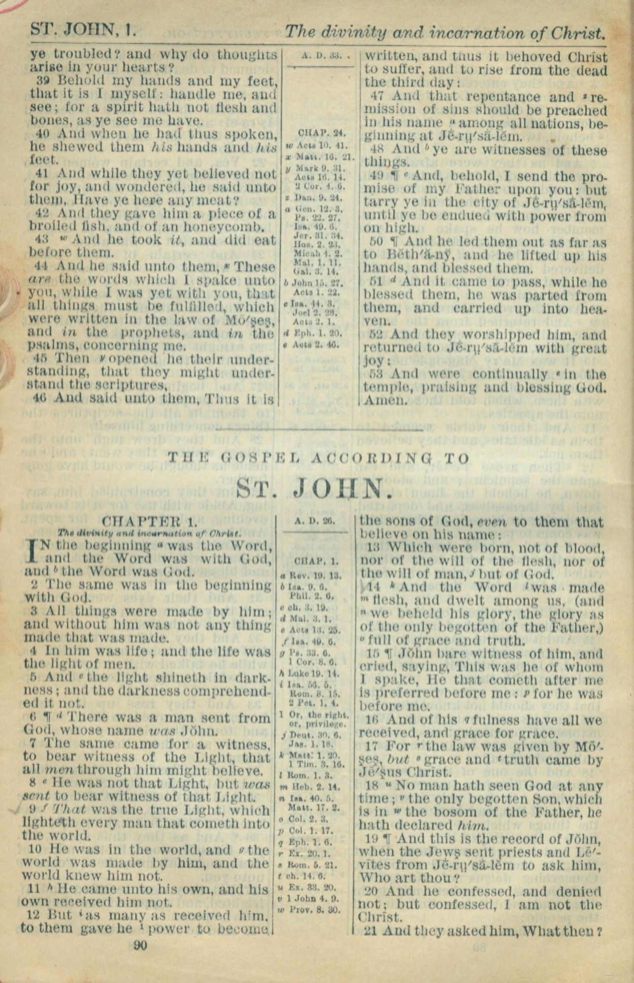 1916年Holy Bible 約翰福音 1 章 1 節到 1 章 21 節