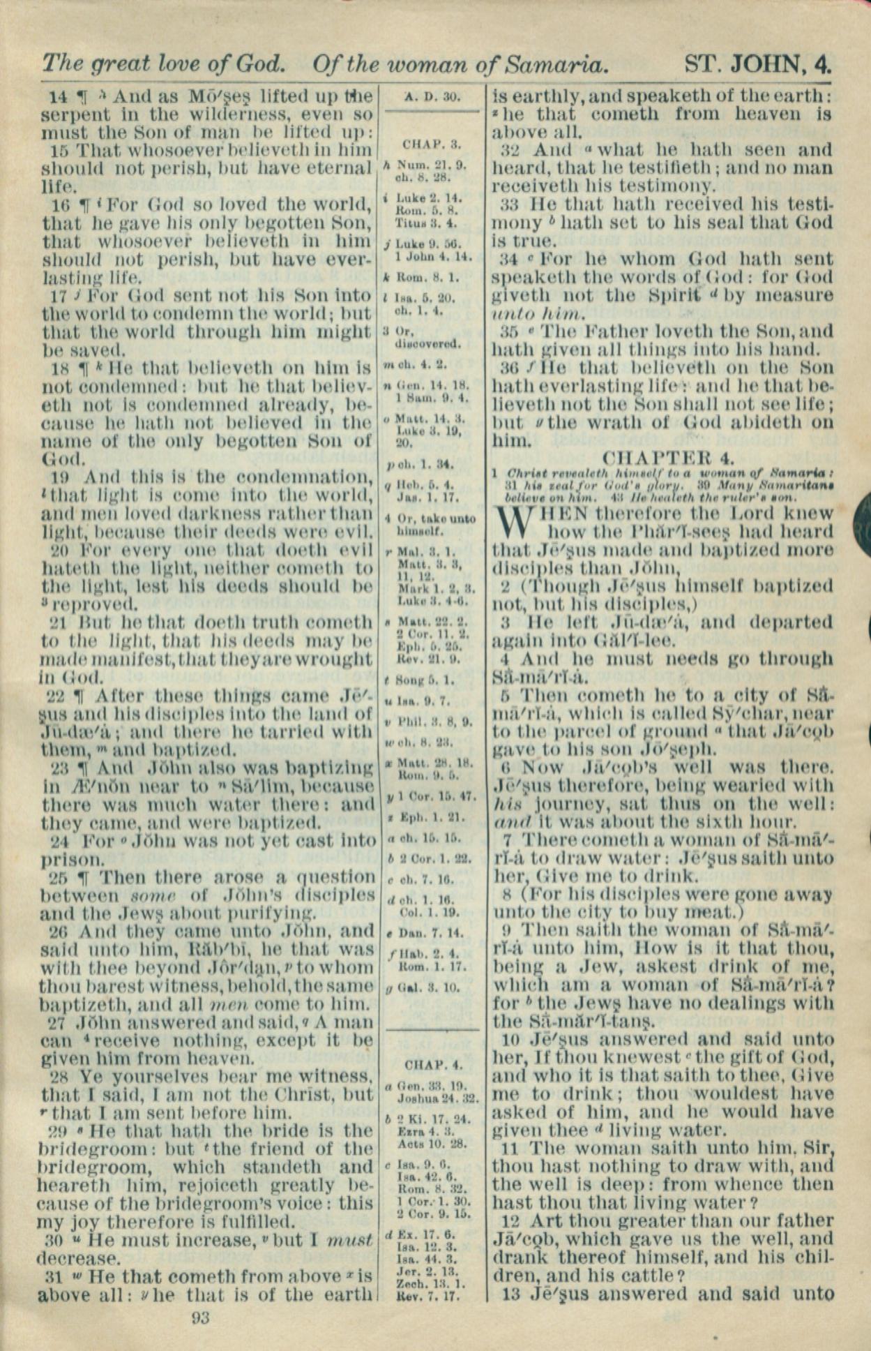 1916年Holy Bible 約翰福音 3 章 14 節到 4 章 13 節