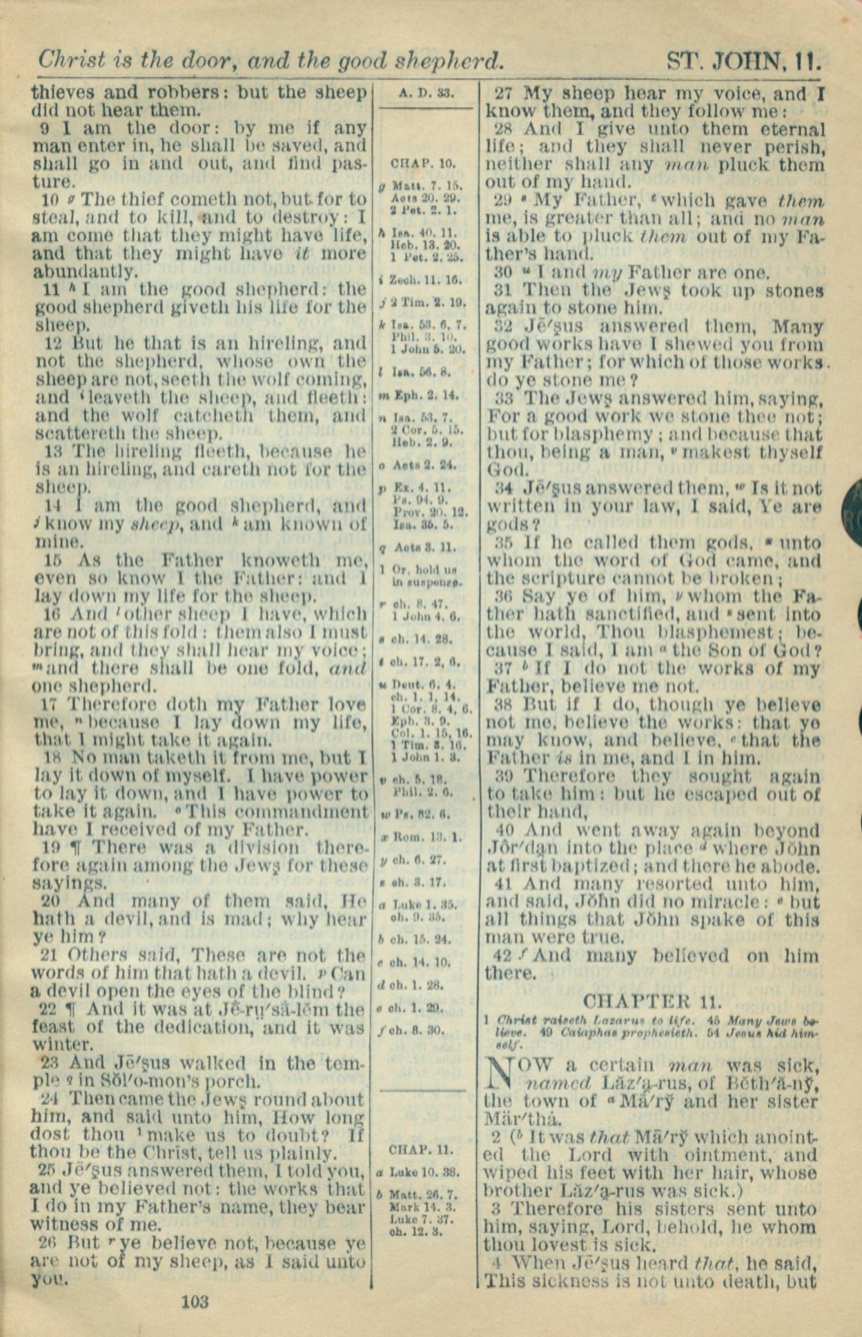 1916年Holy Bible 約翰福音 10 章 9 節到 11 章 4 節