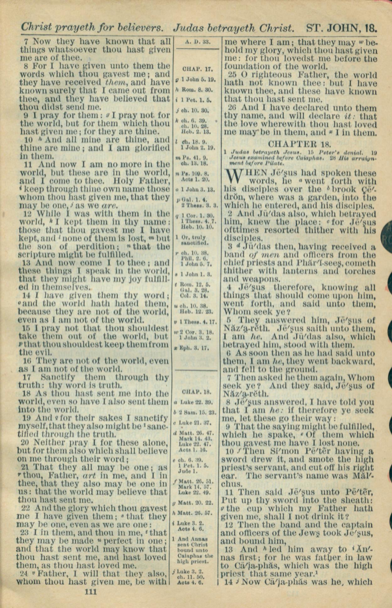 1916年Holy Bible 約翰福音 17 章 7 節到 18 章 14 節