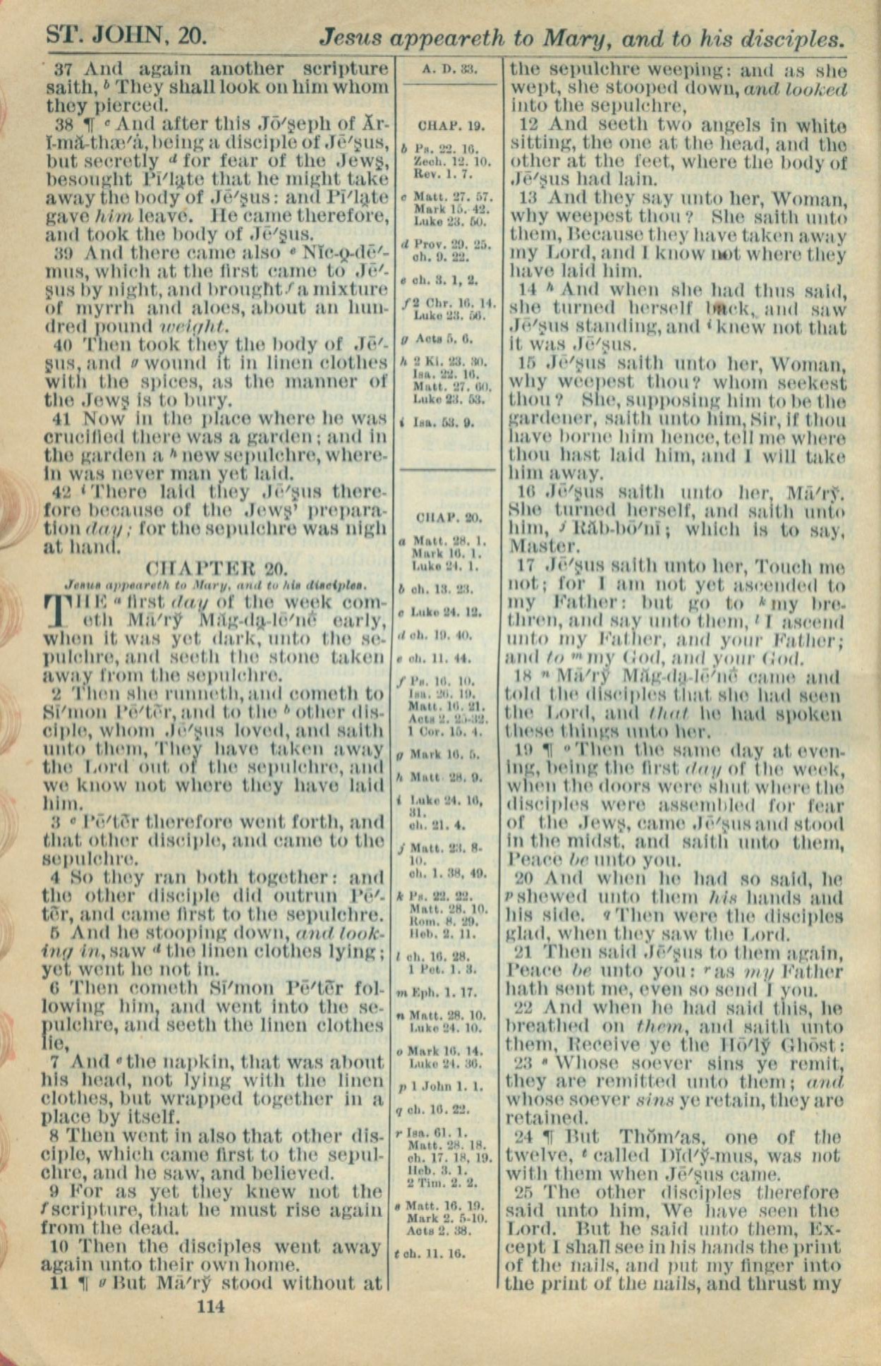 1916年Holy Bible 約翰福音 19 章 37 節到 20 章 25 節