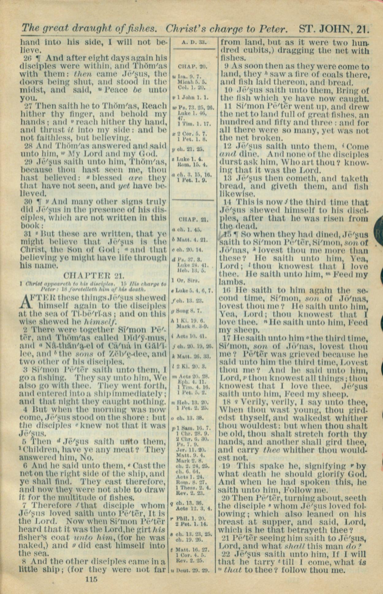1916年Holy Bible 約翰福音 20 章 26 節到 21 章 22 節