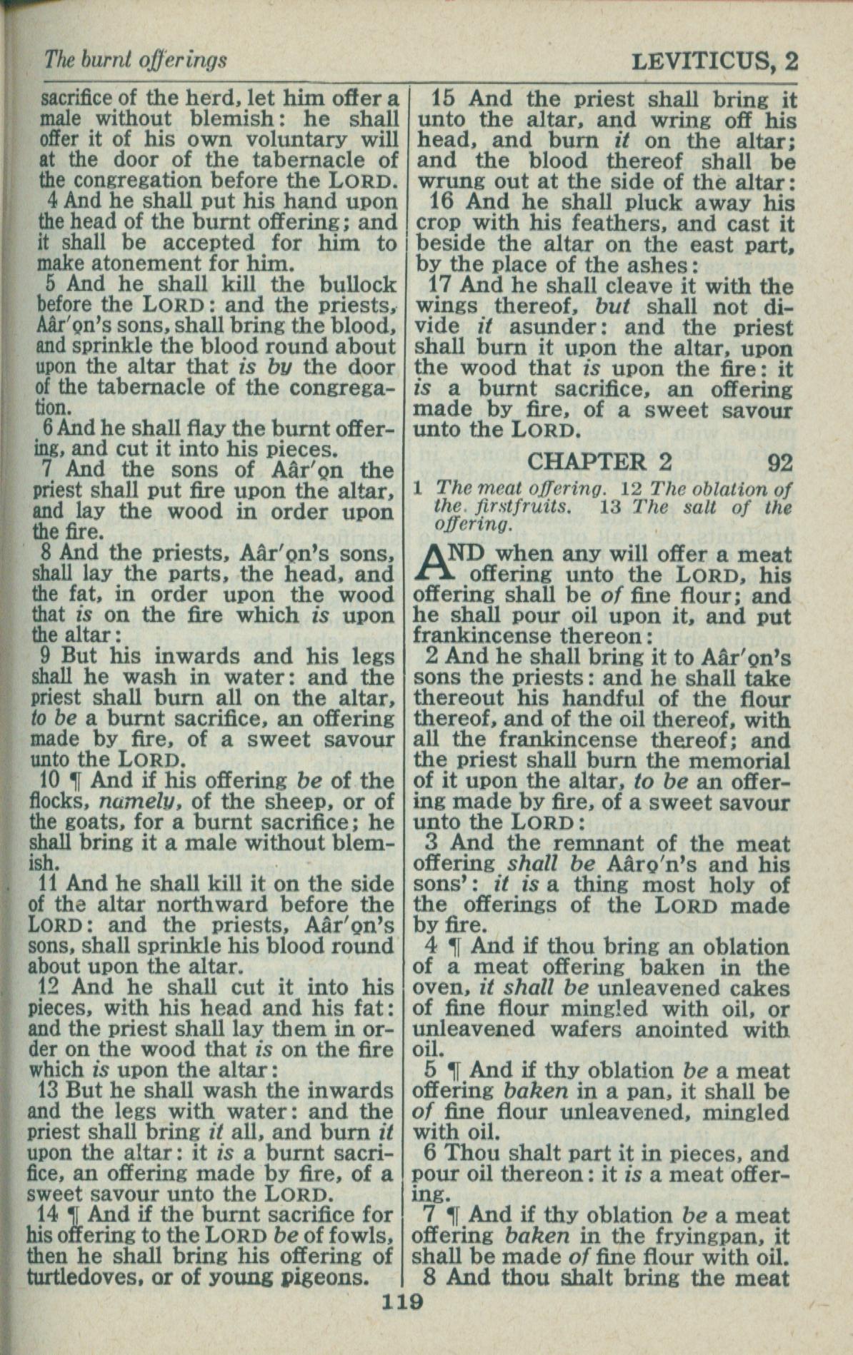 1946年King James Version 利未記 1 章 3 節到 2 章 8 節
