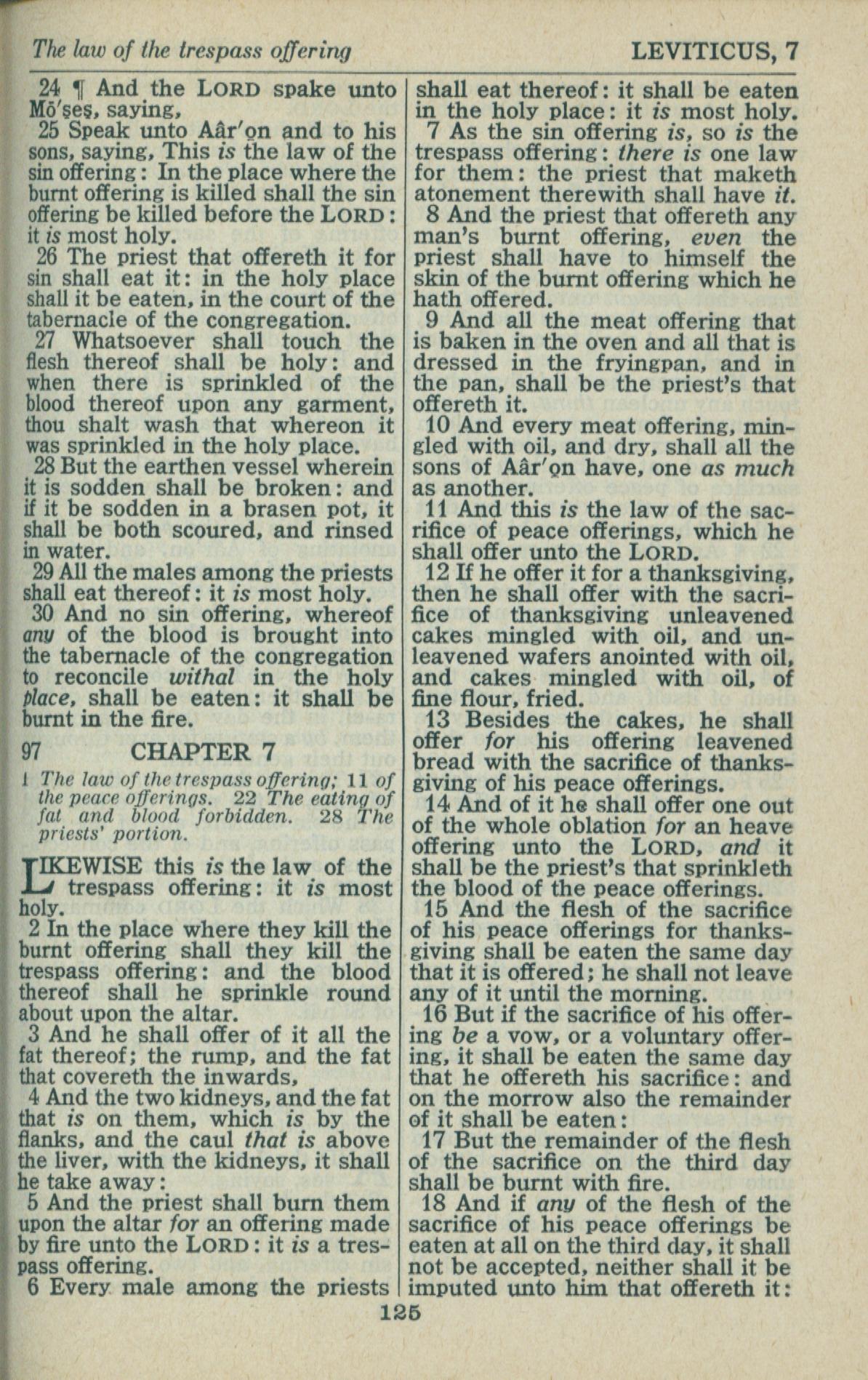 1946年King James Version 利未記 6 章 24 節到 7 章 18 節