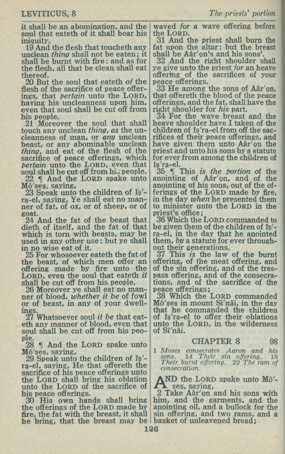 1946年King James Version 利未記 7 章 19 節到 8 章 2 節