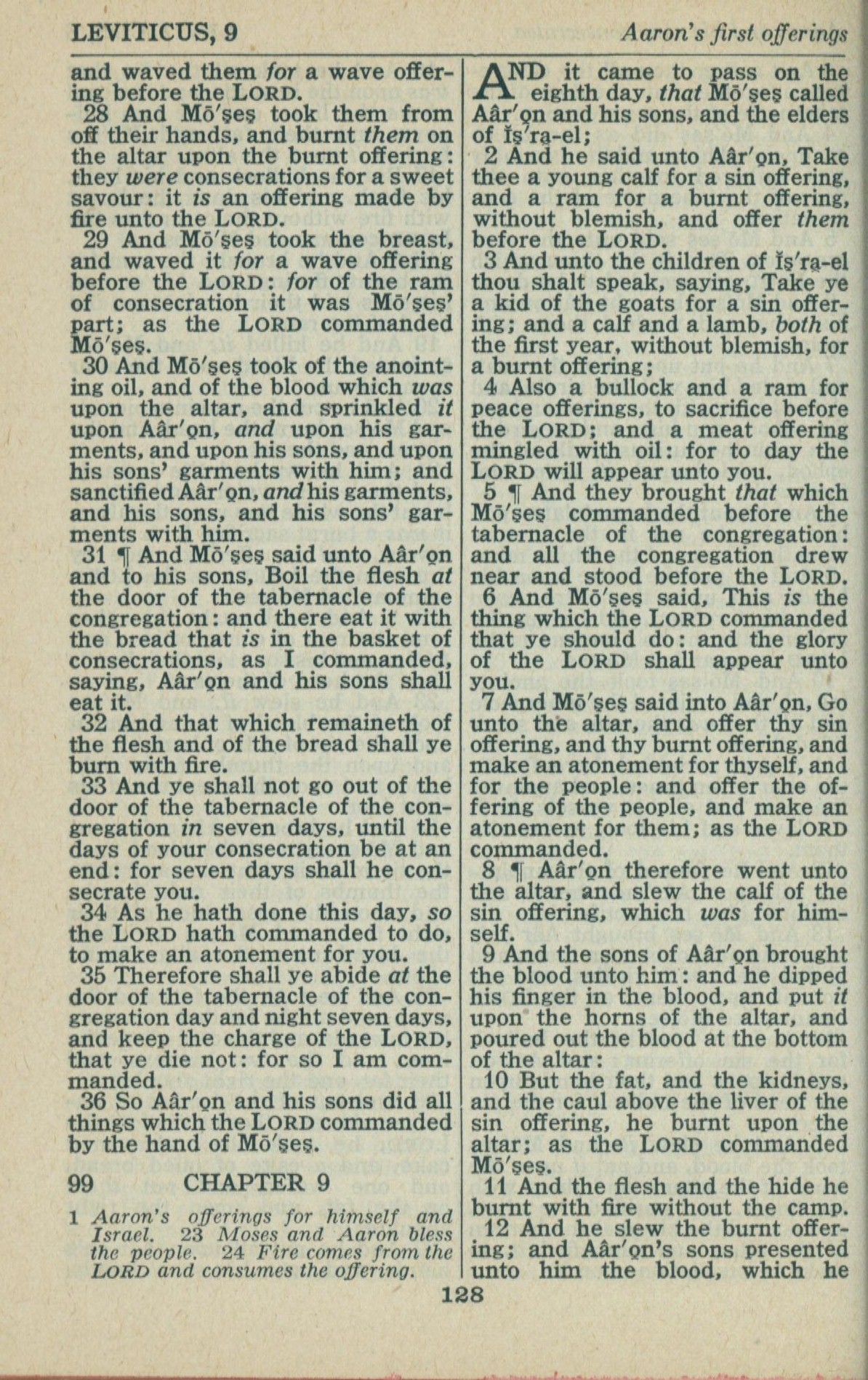 1946年King James Version 利未記 8 章 28 節到 9 章 12 節