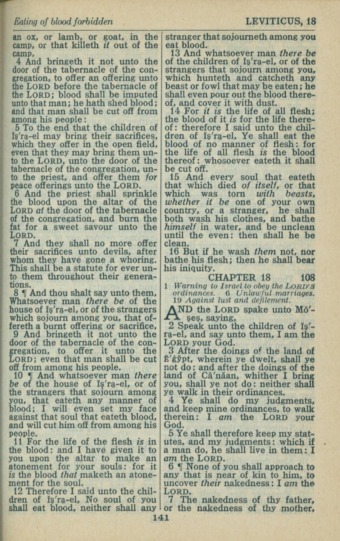 1946年King James Version 利未記 17 章 4 節到 18 章 7 節