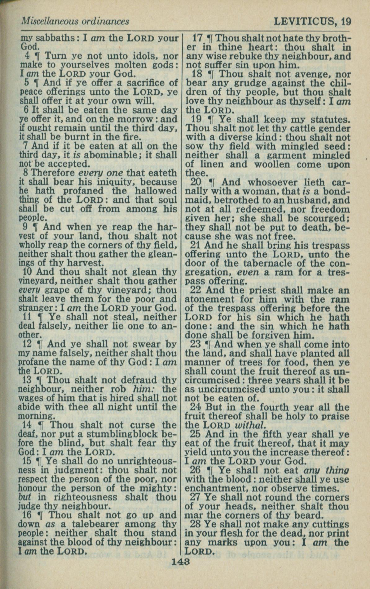 1946年King James Version 利未記 19 章 4 節到 19 章 28 節