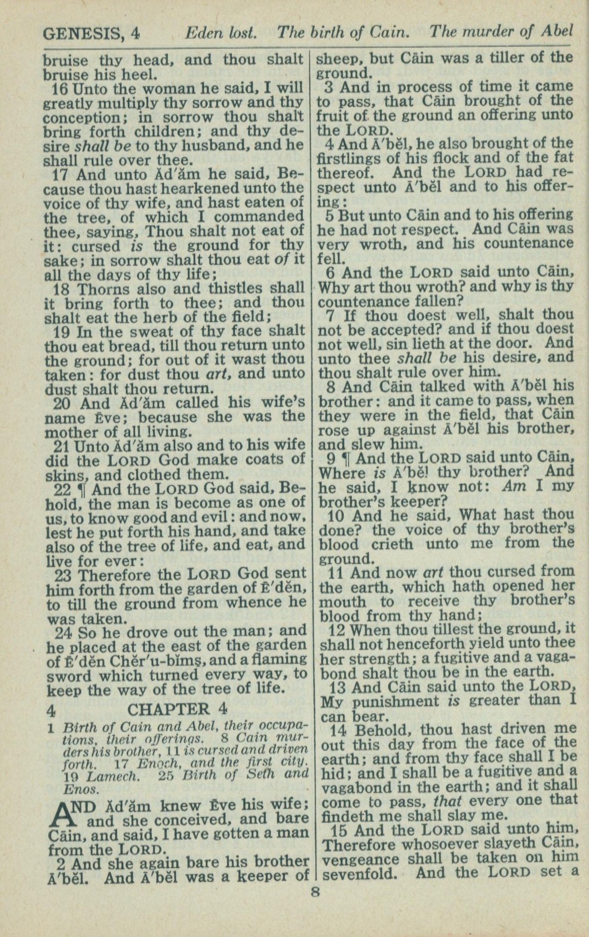 1946年King James Version 創世記 3 章 16 節到 4 章 15 節