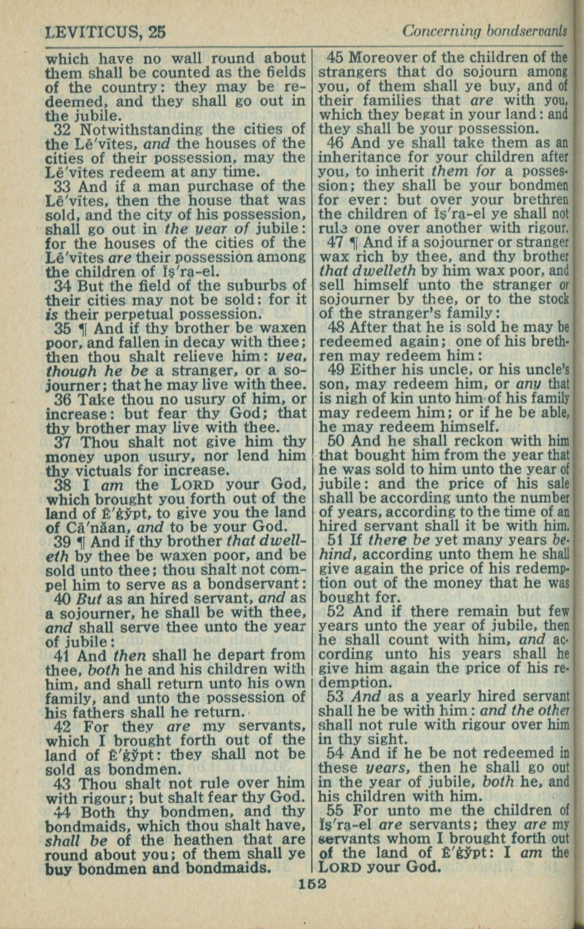 1946年King James Version 利未記 25 章 32 節到 25 章 55 節