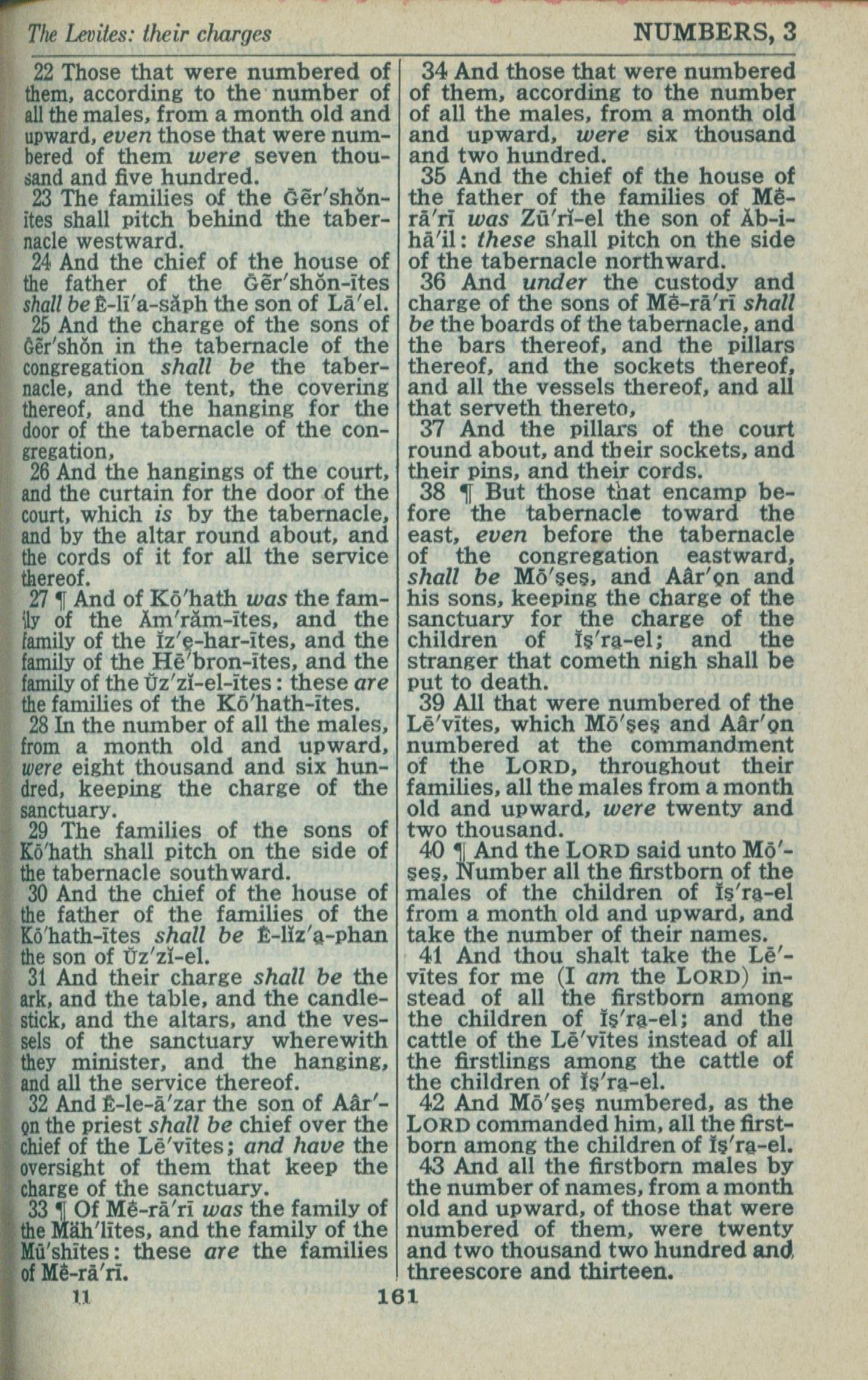 1946年King James Version 民數記 3 章 22 節到 3 章 43 節