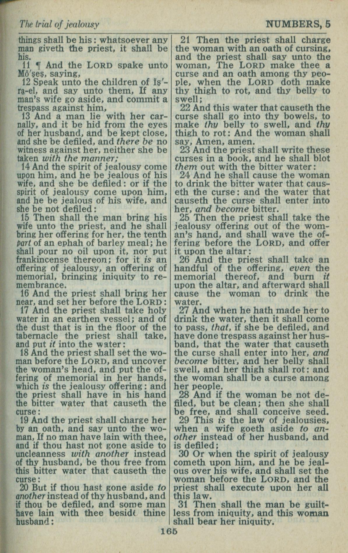 1946年King James Version 民數記 5 章 11 節到 5 章 31 節