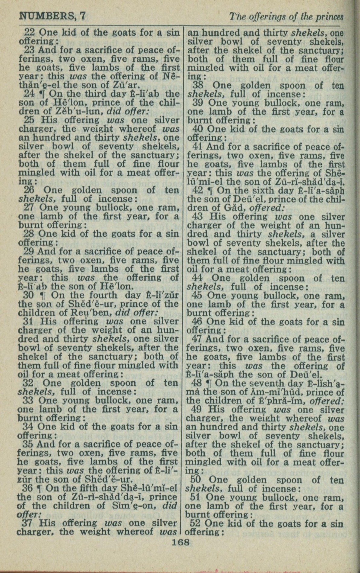 1946年King James Version 民數記 7 章 22 節到 7 章 52 節