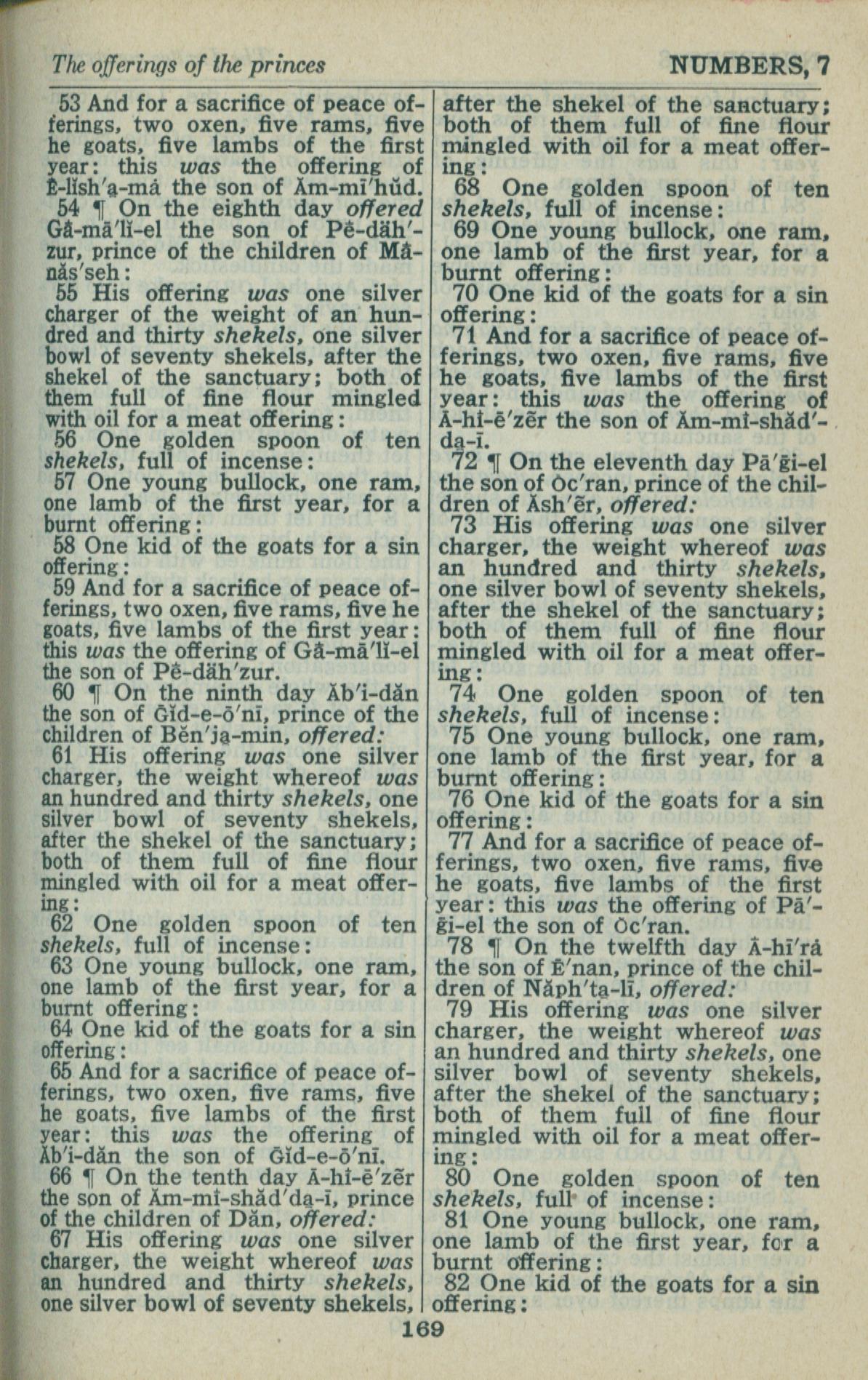1946年King James Version 民數記 7 章 53 節到 7 章 82 節