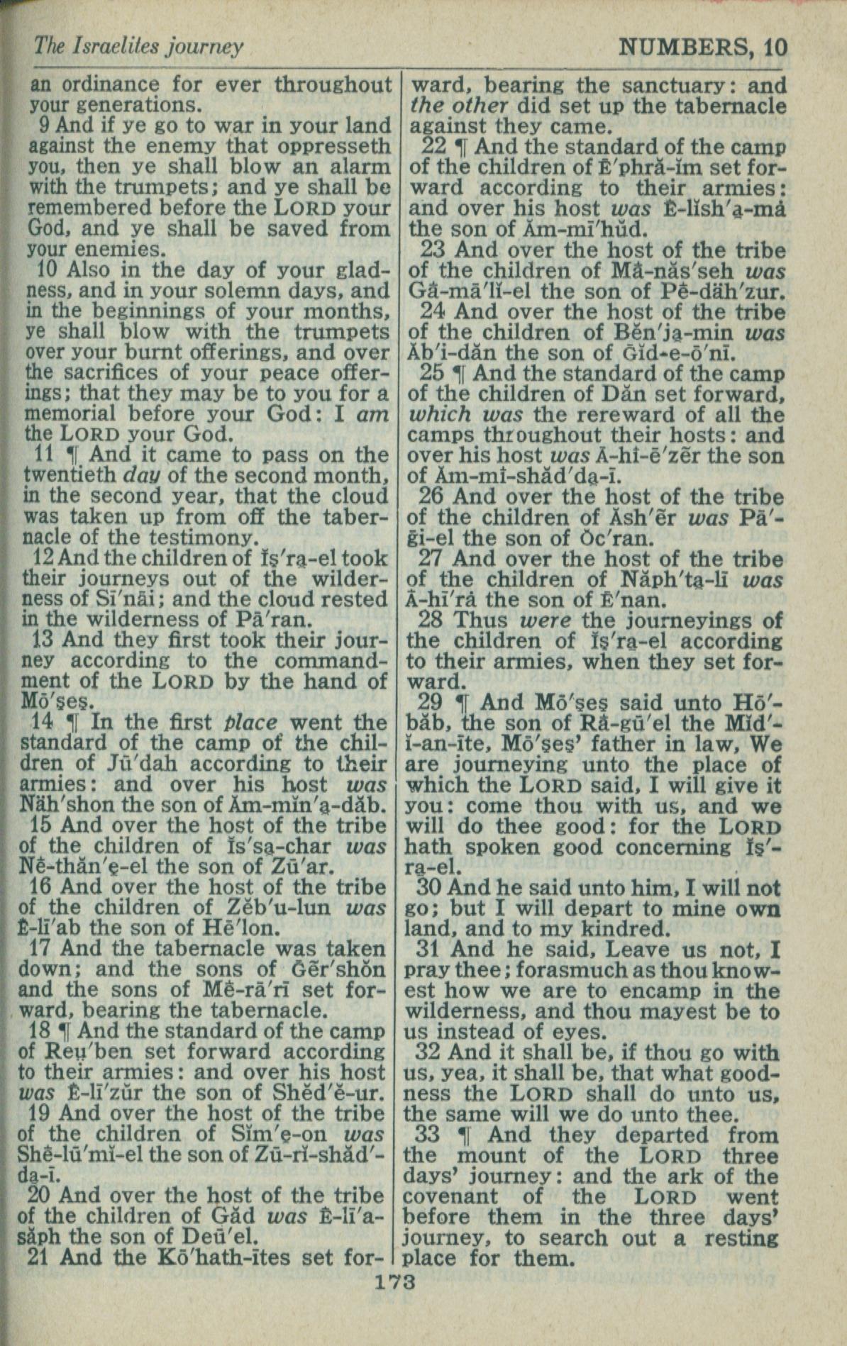 1946年King James Version 民數記 10 章 9 節到 10 章 33 節