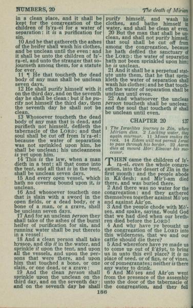 1946年King James Version 民數記 19 章 10 節到 20 章 6 節