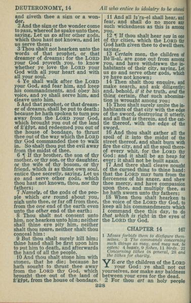 1946年King James Version 申命記 13 章 2 節到 14 章 1 節